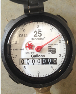 STEP 2 Once you open the meter box lid, lift the protective cap on the meter.Read the number display from left to right. Be sure to include the stationary zero. This is your meter reading. Meters measure water in gallons. Charges for the amount of water consumed are rounded to the nearest thousand gallons used during a billing period. Compare that reading to what your bill states as your current or present reading.